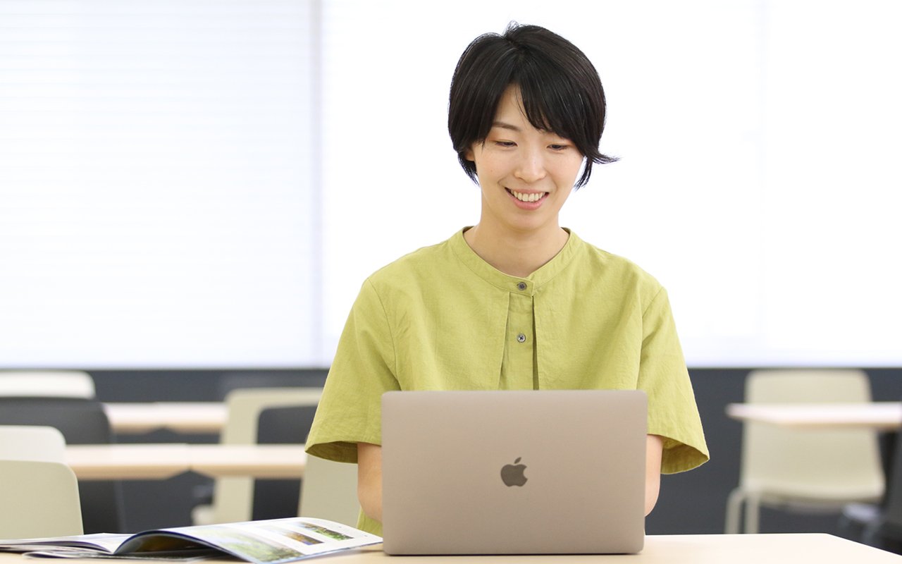 さらに様々なデータの分析調査、マスコミ対応、各種文書制作、その他も多数担当。ときには大勢の社員にインタビューして回ったり、難度の高い仕事に頭を悩ませながら、“120%のクオリティ”を目指して日々、前向きに取り組んでいます。
